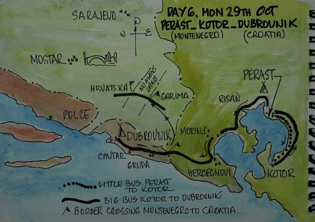 Today was a bus day. The first bus, a small one from Perast to Kotor, was a real sardine experience (fifty five people packed in). The next bus was a larger one and took us from Kotor to Dubrovnik. At Dubrovnik we intended to take a third bus to Mostar.