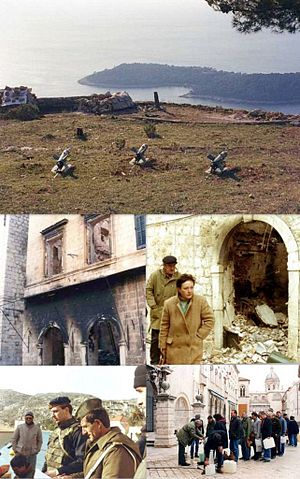 Below is a collage showing Dubrovnik under siege. From Wikimedia Commons courtesy of Peter Denton from Teddington, UK. Peter is a retired editor writer.