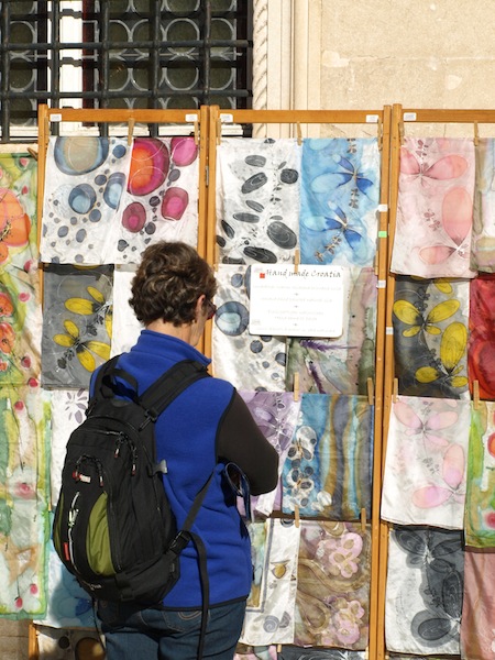 Looking up can have drawbacks. Amazingly, dog owners who live within the old town let their dogs crap on the footpaths and they don’t pick it up and, you guessed it, I walked into a nice fresh one! Dubrovnik is a world heritage listed area and because tens of thousands of people visit it each year you would think the dog doo problem would be solved in the interests of the tourists. Another surprising thing is there was a lot of rubbish in the form of polystyrene bits, plastic bottles and packaging nudging the steps and walls near where people were sitting drinking and eating. One local stallholder dropped a piece of paper which I picked up and gave back to him. He immediately threw it into the water.
