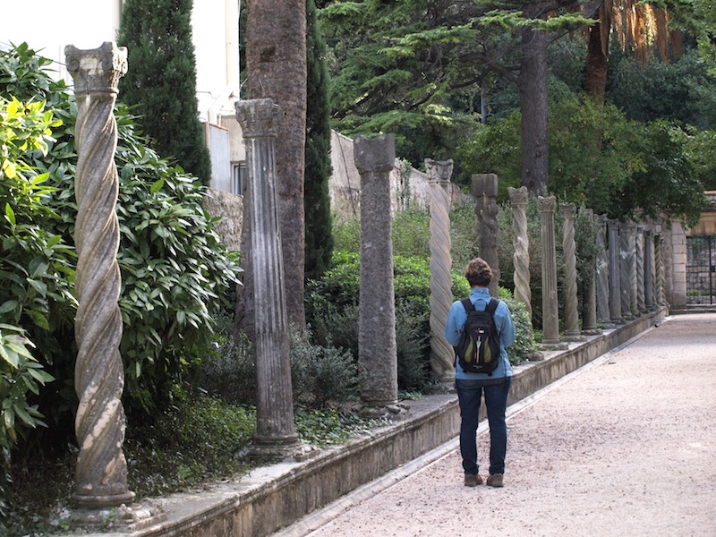 Near lock fence we passed what appeared to be a private garden. On the gate a sign said Visitors Welcome so in we went. It belongs to the University of Dubrovnik. For me, it was like entering heaven, as around the periphery of the garden was every known column. If you have been reading this blog in its entirety you will know I’m hooked on columns, especially ones in blue jackets.