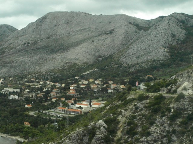 One of the many villages between Kotor and Dubrovnik. The limestone mountain towering over the village was mostly scree.