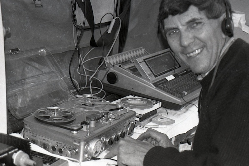 Editing a tape out in the bush on the back tailgate of our car.