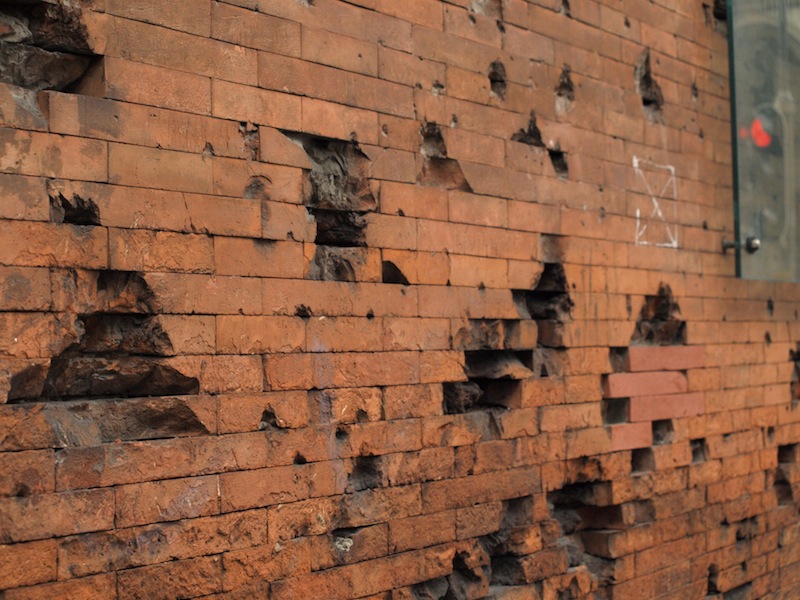 Bullet spats on a wall in one of the main Munich shopping areas.