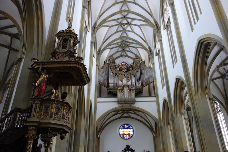 Almost every church has an organ but this one is special as Wolfgang Amadeus Mozart played it. Mozart visited Augsburg on a number of occasions between 1763 and 1790. Augsburg, as he expressed it, was the ‘hometown of my daddy’. During his visits Wolfgang met relatives and old friends and on one occasion piano maker Johann Andreas Stein led him to the organ in the St Ulrich church.