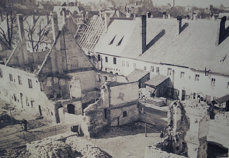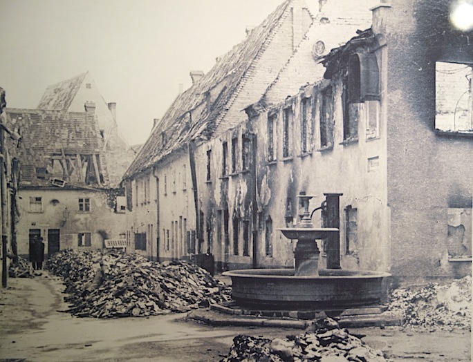 The Fuggerei was almost totally destroyed during WW2 but the tenants survived because they had the sense to dig themselves an underground bunker. The bunker today houses an exhibition relating to Augsburg destruction by Allied bombing in 1945.