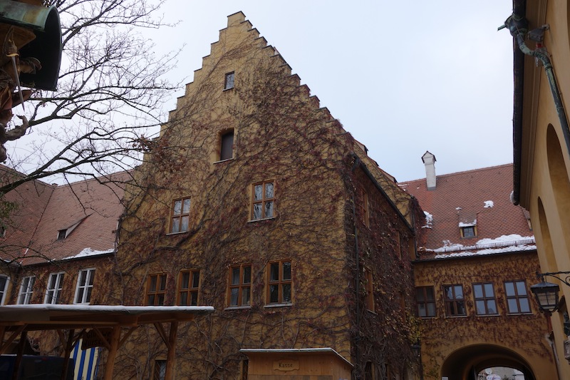 After warming ourselves in the Dom we visited the Fuggerei, the oldest social housing settlement in the world. In modern day terms it is a housing estate for the less well off.