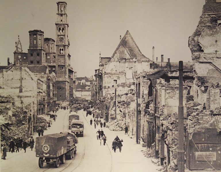During the Second World War, 1 499 Augsburg residents were killed in air-raids. By the end of the war only somewhat more than 100 000 peopled lived in the city (today’s population is around 270 000). Allied bombs destroyed one-fourth of the 50 000 homes and 32 000 homes were damaged. On April 28, 1945, American troops advanced into the city without facing any resistance.