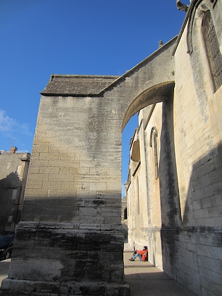 The present community of the clergy mustn’t have the ear of those who dish out the funds as some areas of both the interior and exterior of the church were a bit knocked about. At one of the disused entrances of the church there was a mass of modern day packaging rubbish and a rat’s nest. Obviously there is no money available for cleaning. In the rat nest were stone fruit seeds, chestnut shells, small bones and half a wizened up lemon. I thought the rat was taking a chance raising its young in public as it is believed that it was at Marseilles, not far along the coast from Tarascon, where rats carrying plague-infected fleas came ashore in 1348.