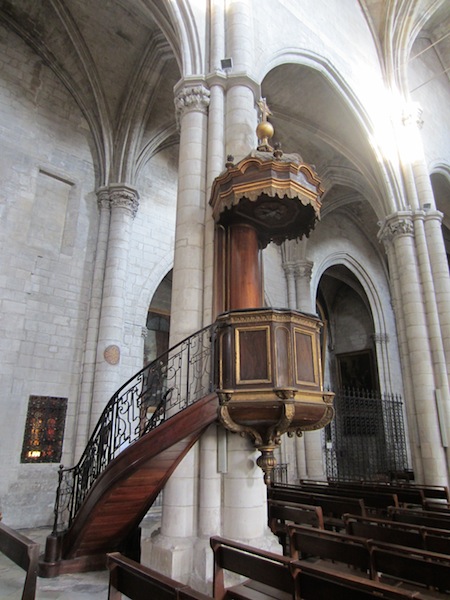 Close to the chateau was St Martha’s Collegiate Church (the one from where the Wikipedia image of the chateau was taken). When I first looked at the church I thought the architecture was a bit of a hodge podge. It looked both Romanesque and Gothic. Later in the day, after reading its history, my thinking was confirmed. The following photographs show what I mean.
