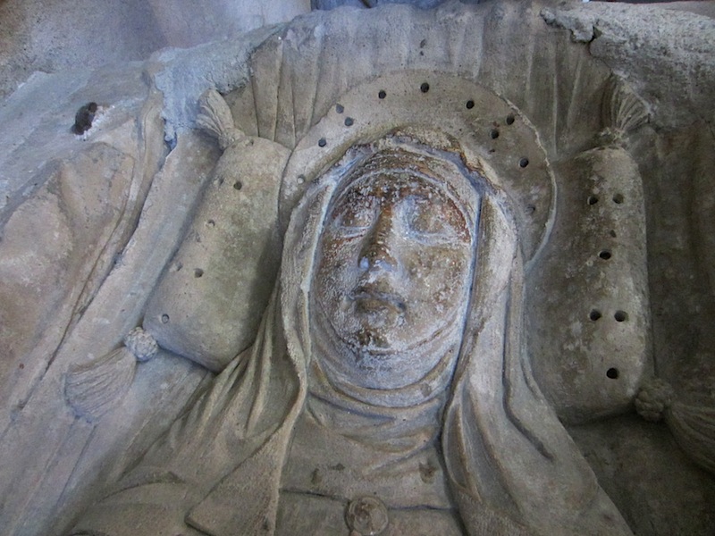 St Martha at rest. The dark stains on her face are where people have touched or kissed her over the centuries.