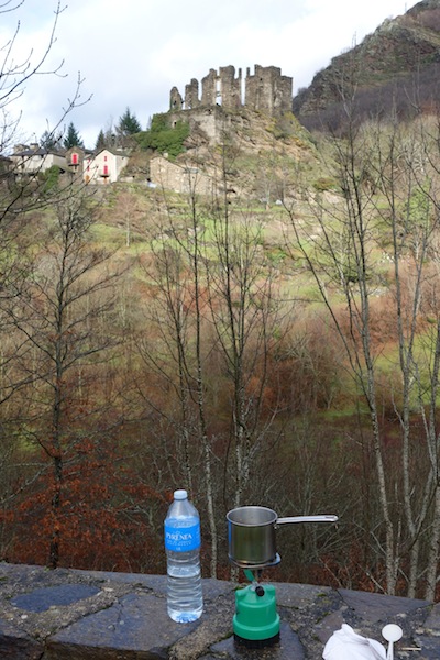One view from the road was a ruined castle so we decided to stop, have a cuppa and work out the best way of getting there (photo below).