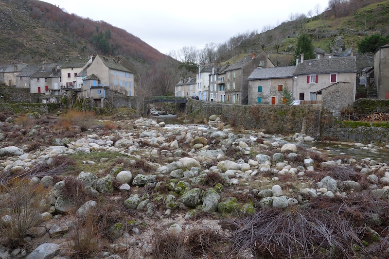After leaving Le Collet-de-Deze our next stop was at Cassagnas, a small village on the road to Florac. There was only one smoking chimney in the village so I assumed it was basically deserted. Apparently these days there are few permanent residents in the villages along the RLS trail through winter, they are mostly summer holiday destinations.