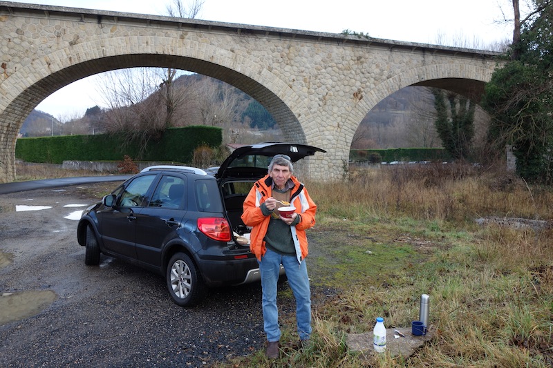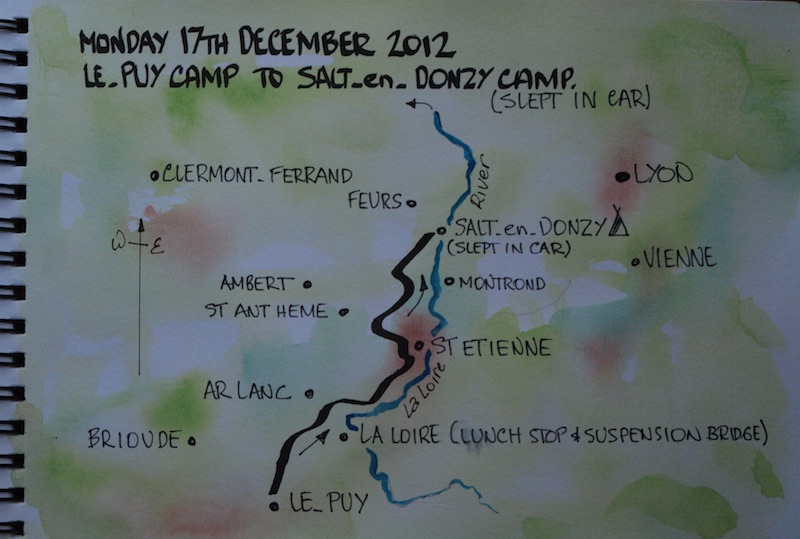 Cold is the constant companion of those who live on the streets in Europe. I bought this young man an apple and banana and when I offered the apple to him he opened his mouth and showed me tooth stumps, there was no way he could bite into an apple. I then did something very few visitors to Le Puy would do, I extracted my pen knife and cut the apple into pieces for him. He was a humble and appreciative chap and I wondered… ‘Is it fate that our stations in life are so different or are our destinies part of some grand design?’