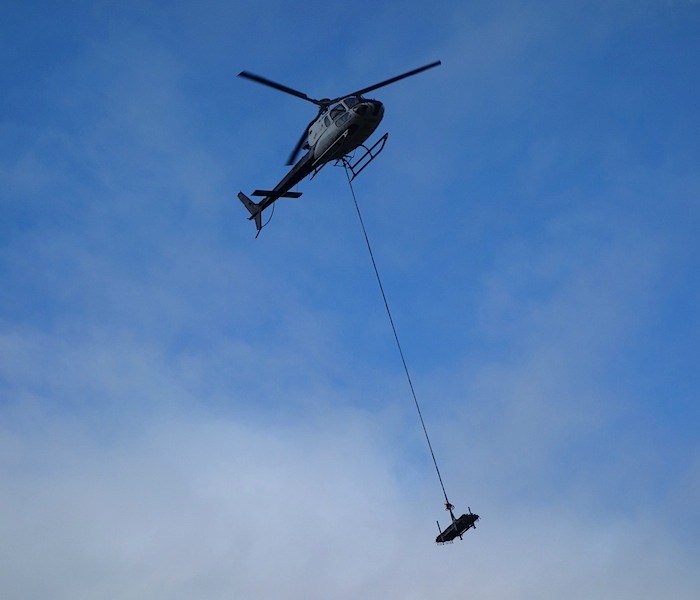 The removal of the scaffolding at Mary’s feet was a very tricky manoeuvre as the pilot had to come in very close.
