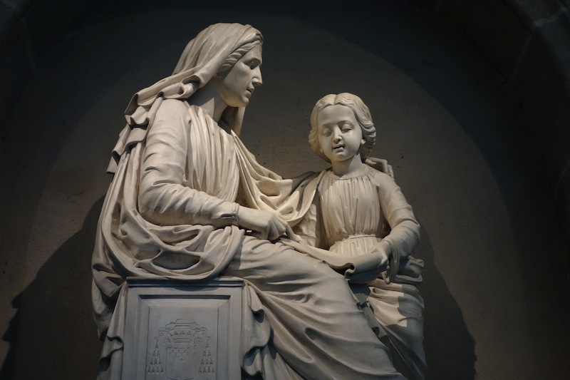 Embracing the stone on the steps of the Roman Catholic Cathédrale Notre-Dame du Puy. It is a national monument of France.