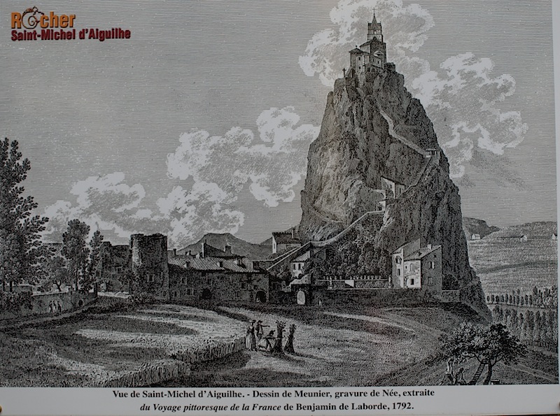 The church on the left sitting on top of the volcanic plug is the Chapel of St Michel d’ Aiguilhe and the statue on the highest point is Notre-Dame de France. Unfortunately we were unable to access the chapel as it was closed for the winter and we couldn’t get up to Notre-Dame de France either as a helicopter was lifting scaffolding away from its base. However there was still plenty to see in and around the old town. I’ll start with some old images and then take you through to today but first, a plaque to read.