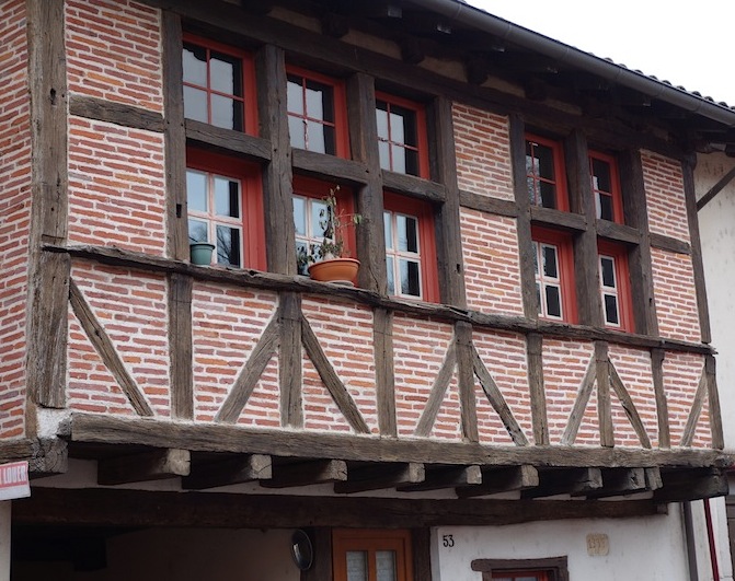 Timber framing in French is known as colombage. The structure usually has a brick or stone foundation at ground level onto which timbers are attached. Once the gaps between the timbers were filled the wall was then covered with lime for protection.