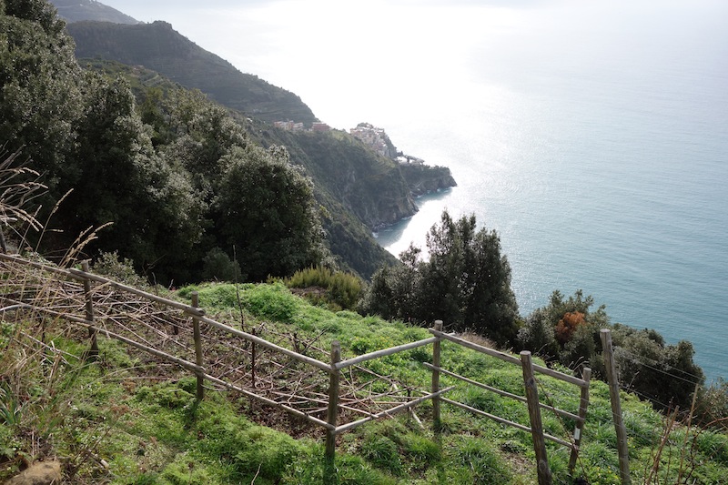 Looking back towards Corniglia. The railway station (the starting point for Bev’s walk) is at sea level.