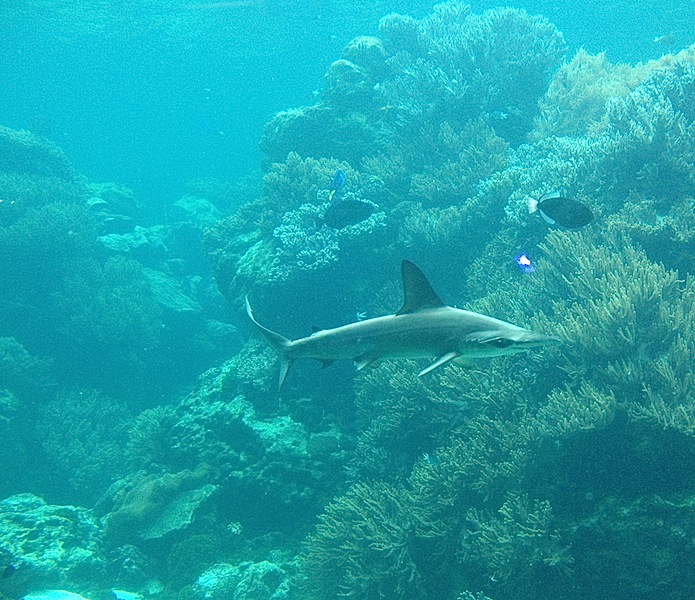 Along the edge of a drop off. Son Tim took this photograph of the tiger shark on one of his many undersea forays.