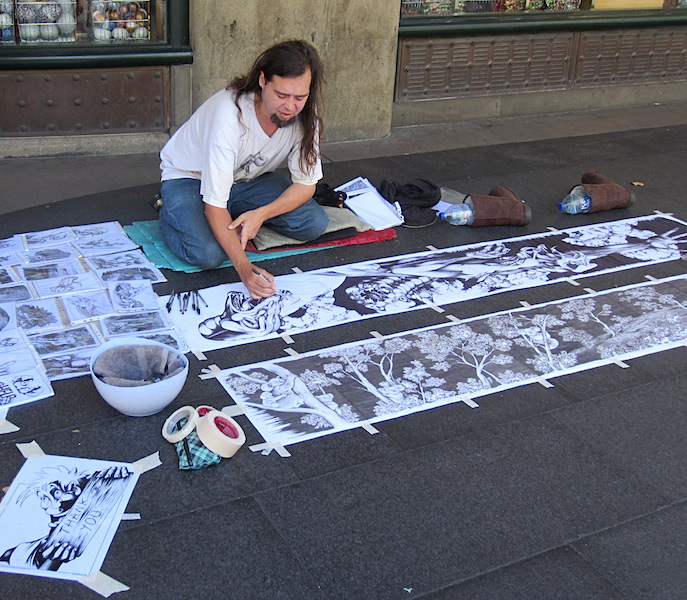 It was intended to make Athens the subject of our first post for our forthcoming Odyssey Part 2 but after visiting the CBD of Sydney before we left Australia I just had to write. The inspiration came as we watched talented street artist James Kite. James not only created surreal images but also images depicting Australian icons. One I immediately identified with, with nostalgic affection, was that of Arthur Stace, Mr Eternity.