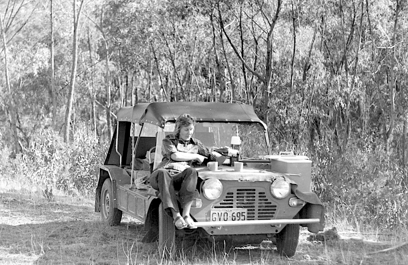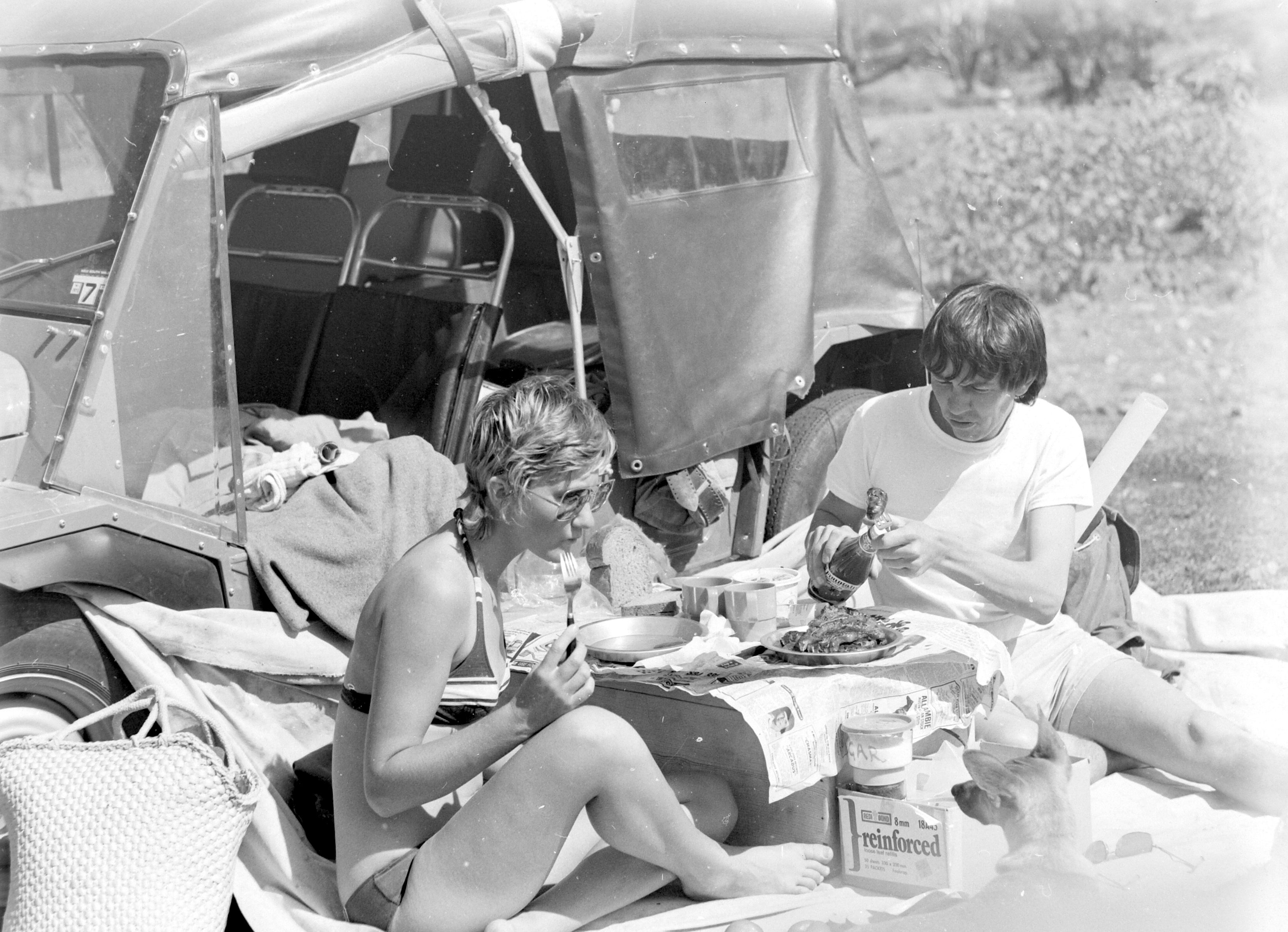 Picnic on the Gwydir River. We bought a Mini Moke after returning from our overseas trip.