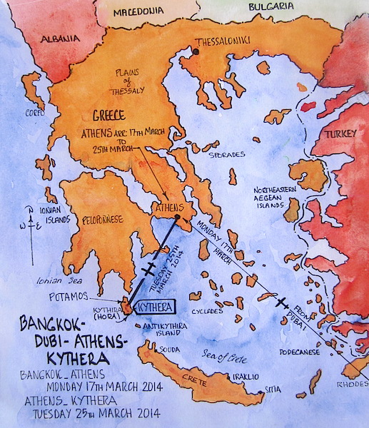 Moving to Tamworth about 90 kilometres south of Bingara we rented a house from an elderly Greek couple who had returned to Kythera, the island of birth, for a visit. Their son Alex and daughter-in-law Maria settled us in. Alex and Maria had two teenage daughters, Metaxia and Eirene and in latter years they used to babysit our two boys. Over the years Alex and Maria have urged us to go to Kythera, so in light of us deciding to continue our Encountering the Past Odyssey through Greece we thought, ‘why not?’ It would not be far out of the way.