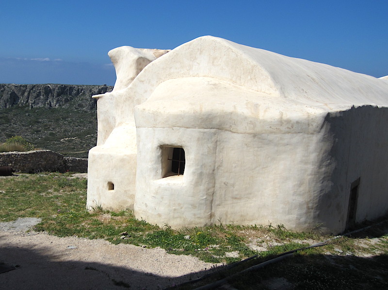 The island in the distance is know as the ‘Egg’ because locals contend that when clouds hang over the island it looks like steam rising from a pot when boiling an egg. A rare plant, Sempreviva, with an everlasting yellow flower, grows on the island and the flowers are gathered once a year. The yellow flowers have become a symbol of Kythera and are used in many dried arrangements and decorative souvenirs.