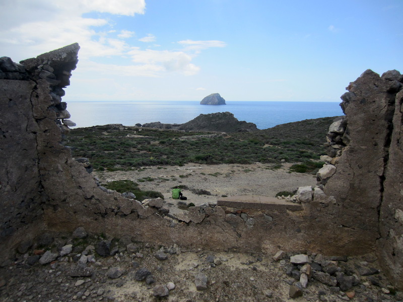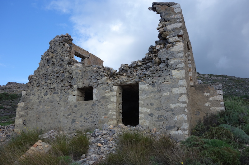 Cape Trachilos was where a WW2 German command headquarters were built and it comprised an observation tower, fuel bunkers, radar, anti-aircraft gun emplacements and a two storey officers’ quarters. Today there are no intact buildings on the site; all were destroyed by the Germans as they retreated north from the island in August 1944.