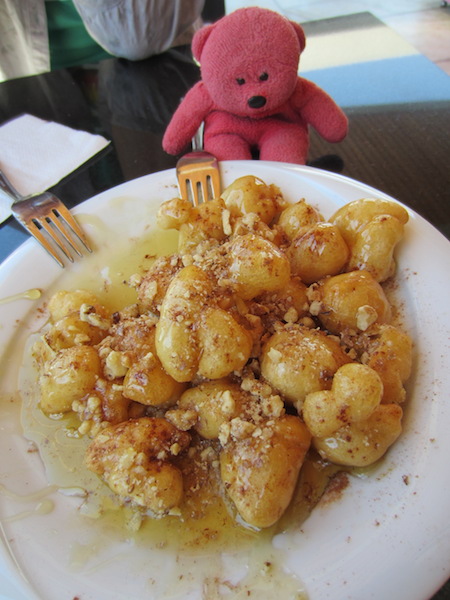 Greek espresso coffee comes in small cups. One gulp and it’s gone. Bev drinks full strength and I drink