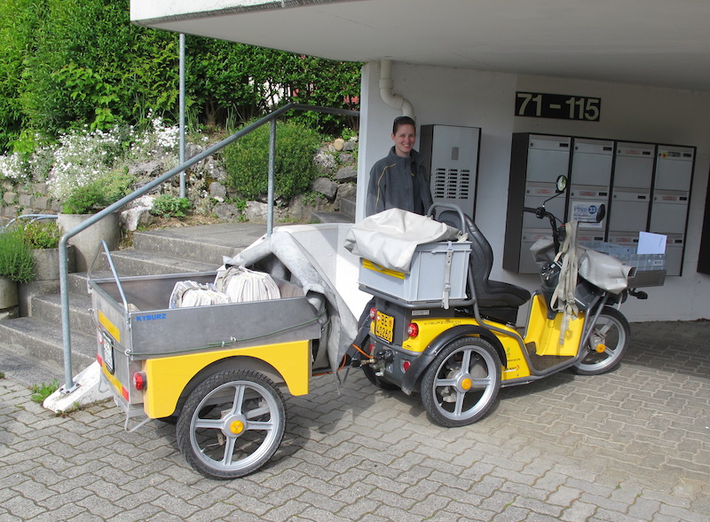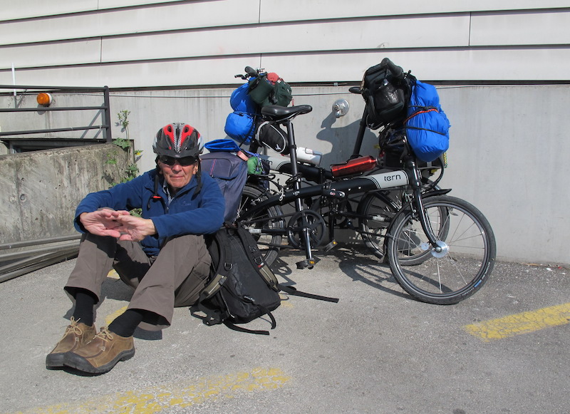 Whilst waiting for Bev a remarkable e-bike+wheelchair came past. I spoke with the carer who told me he takes his disabled charge out twice a day for a tour around the region. The Swiss are very much into e-bikes and battery charging stations are beginning to appear at supermarkets, cafes and bars so you can charge your bike battery whilst shopping or socialising.