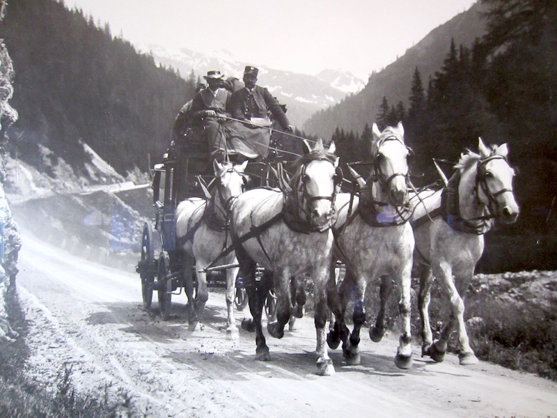 Imagine how hair-raising it would have been riding in a coach like this over and through Swiss alpine passes. Definitely not for the faint-hearted!