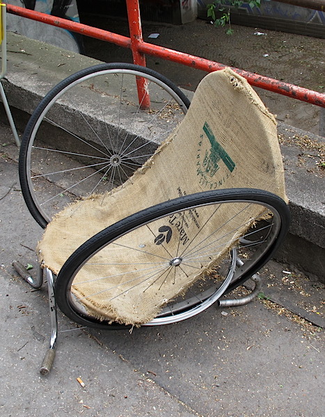 Partway along the bike path was a café called the Bajkazyl and all I can say is, it’s unique. The advertising blurb said, ‘Café-bar & bike culture factor. Moody living room and easy lounging/bike building workshop, store showroom & rentals. With a sunny balcony terrace area or couches. Locally master roasted coffee, ‘deli’ food plates, sandwiches and cakes. Combination w/ the bike life style & the possibility to try/rent a few choice custom recycled bikes. Sitting there watching the wheels going round and round. Directly on the Vitkov cycle track.