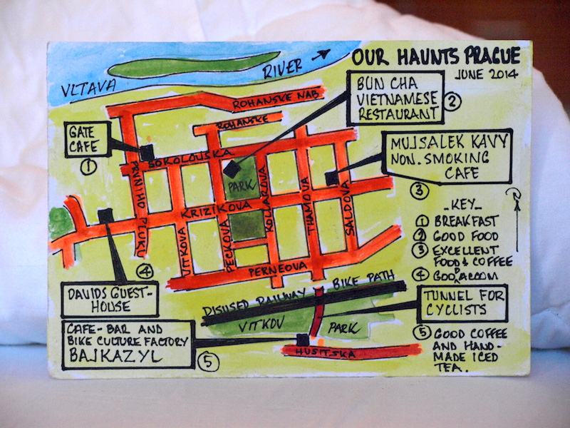 Another great find away from the tourist area was the Bun Cha Vietnamese restaurant, great food and a big plate costs from $4-50 to $6-00. It is no doubt one of the ‘Best Kept Secrets’ in Prague and to help any readers heading to Prague to find it I have drawn a map. The map shows other eating places we found that suited us fine as well.