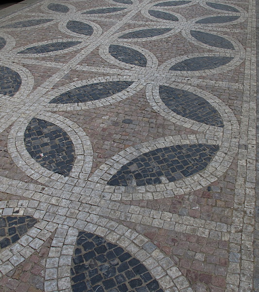 In general, people call stone pavements like the one above cobbles but technically this is incorrect. Cobbles are water-worn round stones. Settes are roughly squared or rectangular in shape.