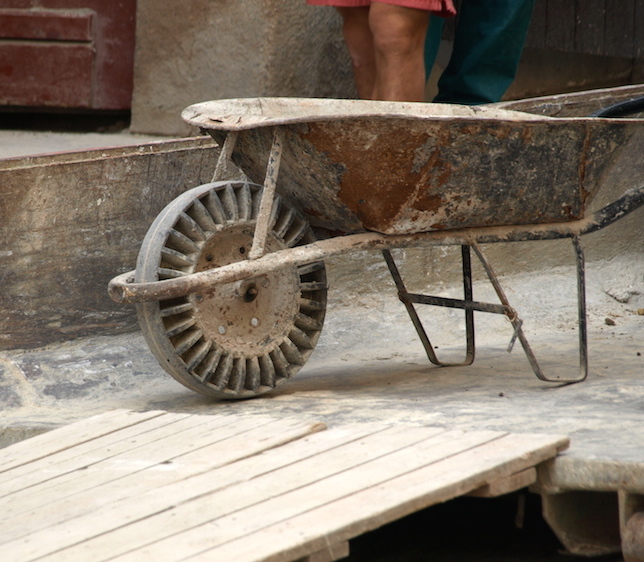 ……a plastic-wheeled wheelbarrow. If I had one of these I would never have to fix a flat tyre on a wheelbarrow again.