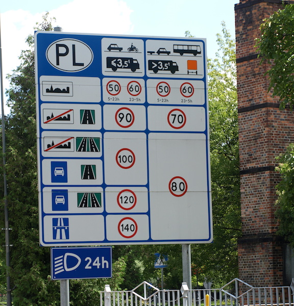 Polish road authorities making sure visitors to Poland understand the road rules. Note that vehicle lights are required to be on during both day and night.