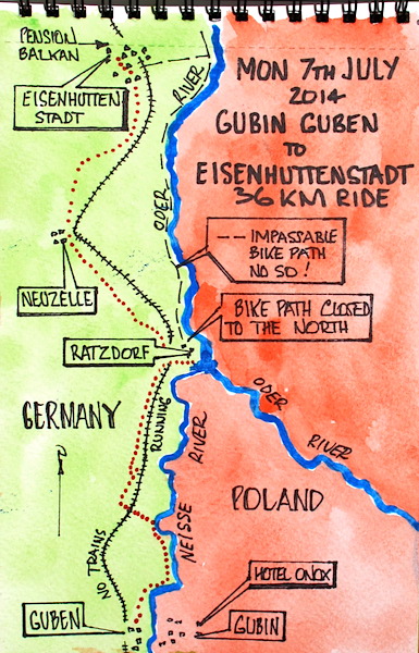 Tomorrow we head for Frankfurt (on Oder) and according to the girl at the tourist information we will have no trouble in finding our way along the bike path as it is well marked.