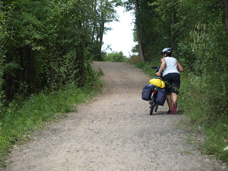 It was a great ride today, 90% of it was along a sealed bike path, not like yesterday at all. There was one section today that took a bit of negotiation around a bridge construction site. There was a very steep uphill push and we guessed it was a 25% grade near the top.
