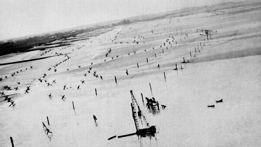 British troops retreating from Dunkirk Image credit: From a film by Frank Capra (Public domain) via Wikipedia.