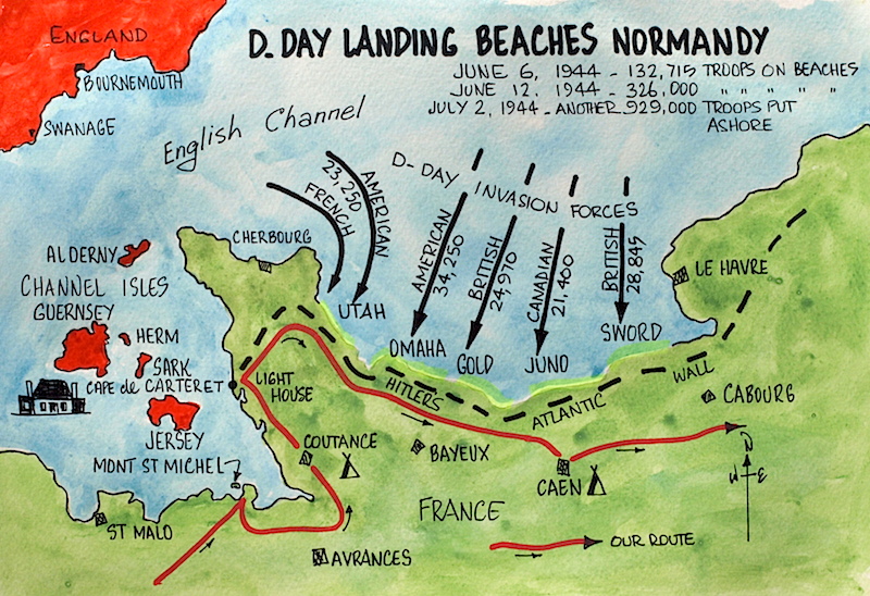 Across Normandy to the D-Day beaches and return to Switzerland via Tonnerre.