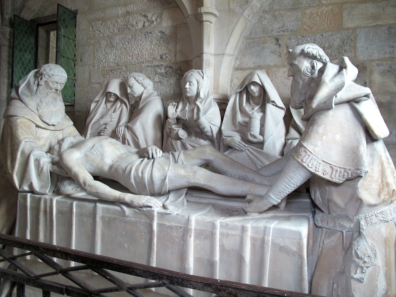 The body of Christ lies on a winding sheet (shroud). St Nicodemus holds Christ’s head and Joseph of Arimathia is at his feet. Behind the corpse are the Virgin Mary, St John, Mary Magdalene and two holy women. A rich Tonnerre merchant gave the sculpture to the hospital. I wonder what the brothers were paid for their efforts.