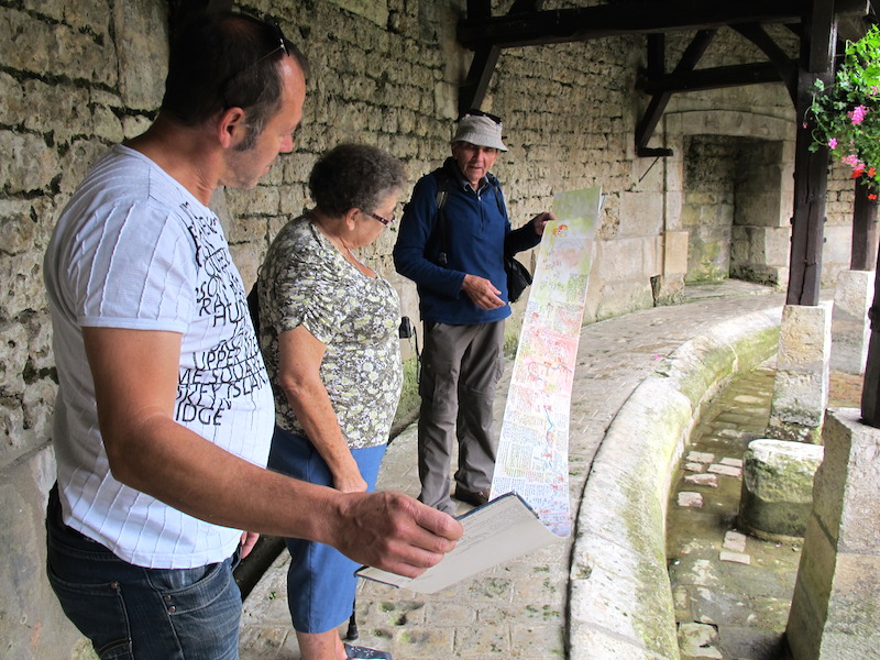 Today the lavoir is not used for washing, it is simply an historical icon for the town. Fortunately for us Yves, a town gardener, was tending the hanging flowerpots and even though neither of us could speak each other’s language we managed to communicate using my concertina diary.