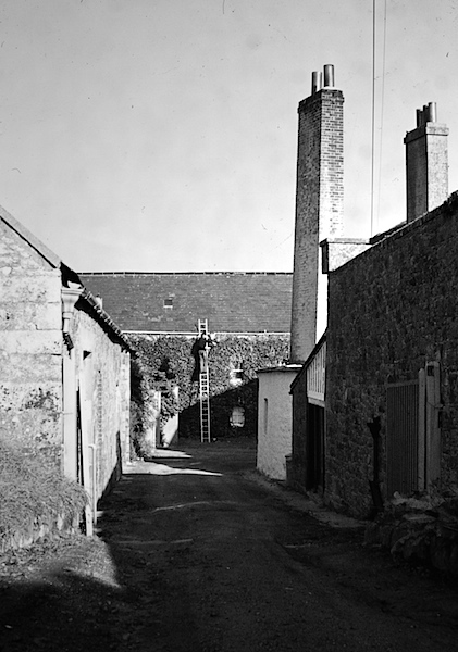 Here I am up a ladder cleaning out the guttering of the barn. Look at the chimneys. I’m glad I wasn’t asked to sweep them.