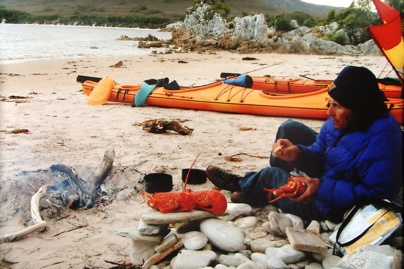 Having a lobster breakfast on the beach near where we were camped when the Indonesian tsunami struck the shore of southwest Tasmania.