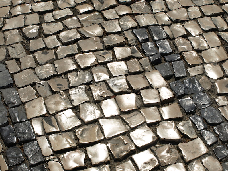 Sett pavements like the ones above are erroneously sometimes called cobblestones; cobblestones are worn river stones. The Lisbon setts have been polished smooth as a result of trillions of shoe soles shuffling over them. The setts are small and I think small ones have been used because they are easy to take up in the event of workers wanting to gain access to pipelines under paths and also, small setts move up and down without cracking if there is path movement caused by expanding tree roots, for example.