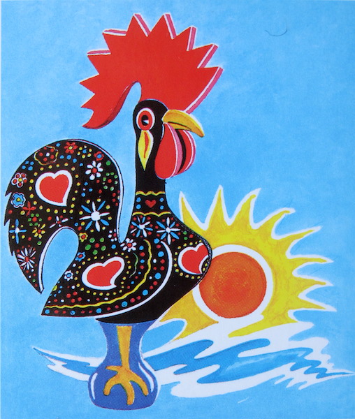 The crowing rooster part way up on the right side of the photograph is an emblem of Portugal. The rooster is everywhere…on pottery, tiles, flags, postcards and posters.
