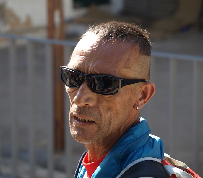 A fellow cyclist about to board the train, not quite as pretty as the lass in the previous photo but an interesting face and a cool basin haircut.