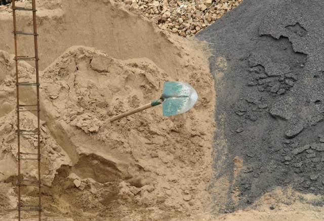 After filling the wheelbarrow with gravel the superman mixer threw his shovel back into the sand heap. The shovel standing up meant it saved him bending over to pick it up when he returned for the next load of sand.