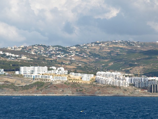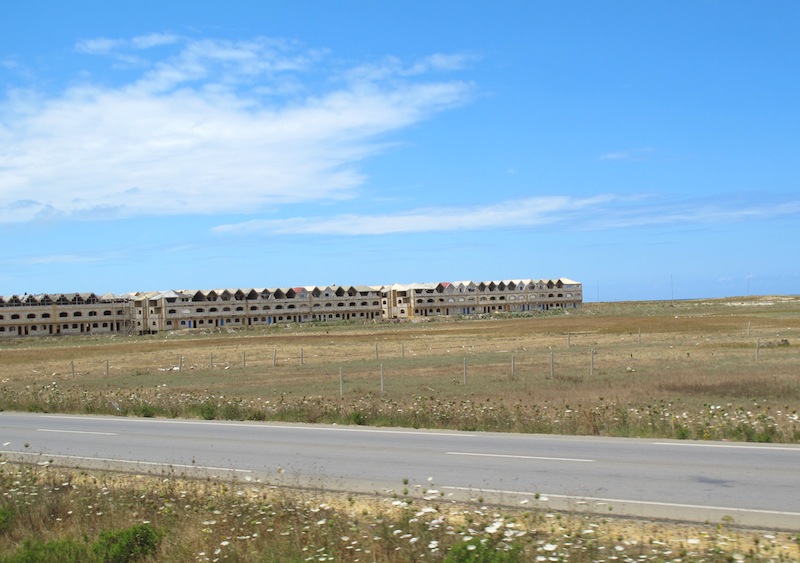 The rail route between Casablanca and Tangier mostly follows the coast and as usual with coastal strips in the region they are being developed to cater for northern European tourists. Many hotels and apartments similar to the one shown in the following photograph are cropping up.