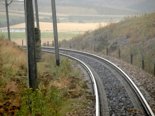 Note the camber in the line. A camber like this allows the train to speed around corners without jumping off the rails.